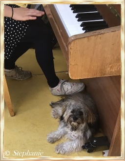 am Klavier, denn sie lauscht gerne den Musikstücken der