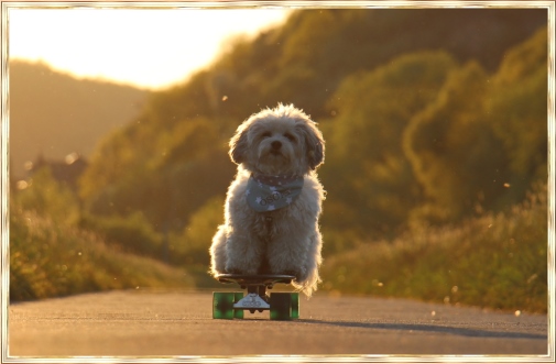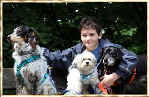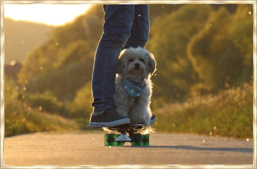 Oscar, glücklich unterwegs mit Mathis.